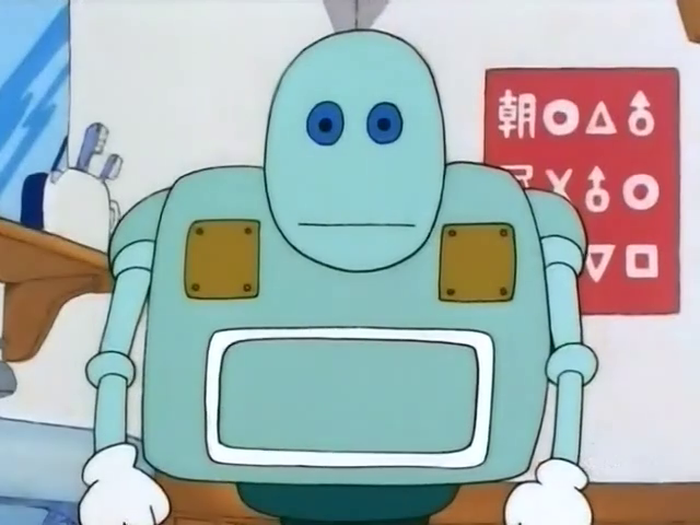 The Barberman (理髪師の男) is a robot created by Senbei Norimaki whose purpose is to give haircuts. The barberman must sing his theme song before he gives a haircut and will often joke around and say that "it's a joke".