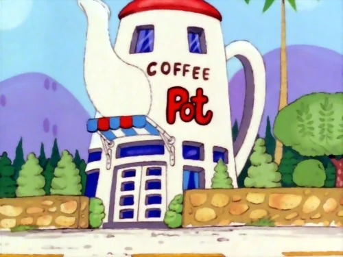 The Coffee Pot is located on the north part of the village; east of the Soramame Barber Shop and south of the Anguirus Apartments. Its address is 5 Platypus, Dr. Penguin Village, Gengoro Island. Many of the people of Penguin Village hang out here. This is the first place Senbei Norimaki took Arale Norimaki after she was created. Senbei's creation Miss. Akiko ends up working there after she leaves the Norimaki Residence.