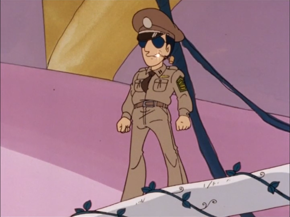 Senbei madly retaliates with Arale's blade and he goes into a fencing match with Kurikinton. Suddenly the men are hit with a smoke-bomb and Kon reveals himself, also with appropriate war-game attire. Akane introduces her father to them and Kon boasts his heroic role in their game.