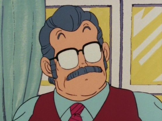 He first appears in Here Comes Arale where talks with Senbei Norimaki in enrolling Arale into school. The principal questions Senbei as he knew him for a long time and didn't believe that Arale was his sister because his parents died when he was young and is told that Arale is his daughter instead.